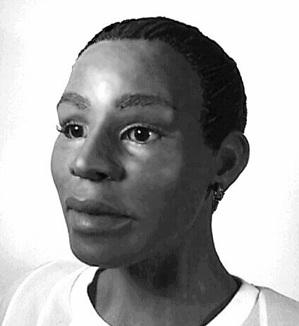 These photographs are of a clay facial reconstruction, created from the victim's skull. THESE ARE NOT PORTRAITS OF THE VICTIM. These images should be considered approximations, based on the size and shape of the skull, and average shape of features such as the eyelids and lips.