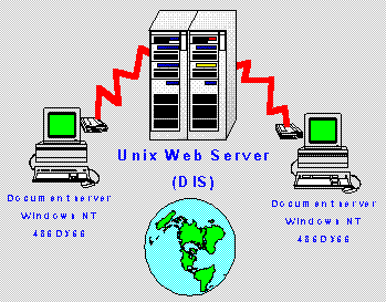 Ideally we would have our own UNIX platform configured to run the CGI scripts, search utilities and serve the main documents for the cabinet. Until that happens we must rely on the DIS server on Cold Harbor Road or a server provided by UK under contract. The Main server would communicate with a series of Document Servers